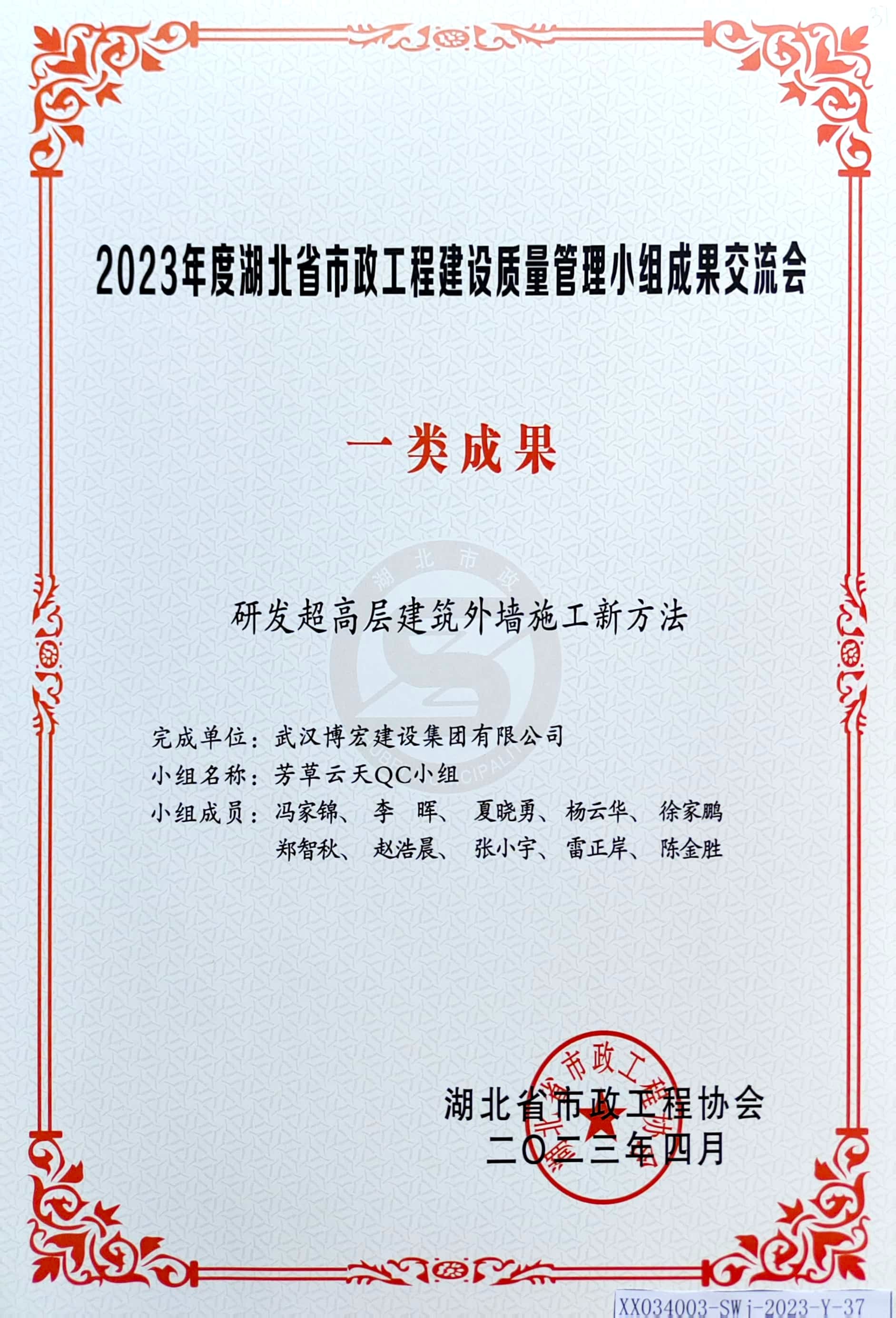 2023年度湖北省市政工程建設(shè)質(zhì)量管理小組成果交流會(huì) 一類成果