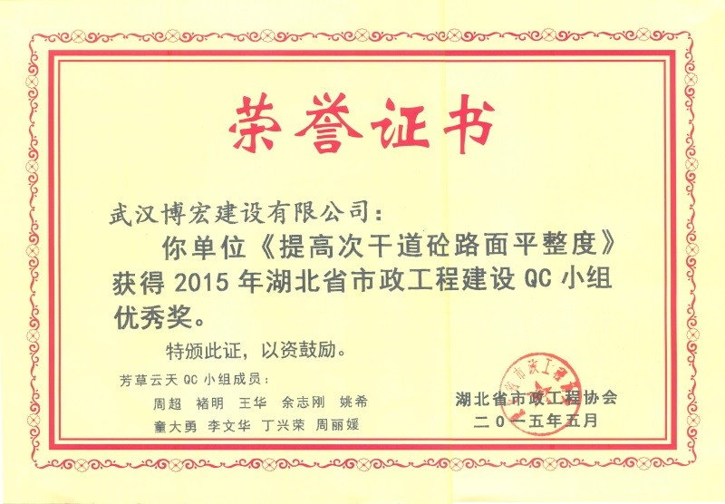 2015年省市政優(yōu)秀獎