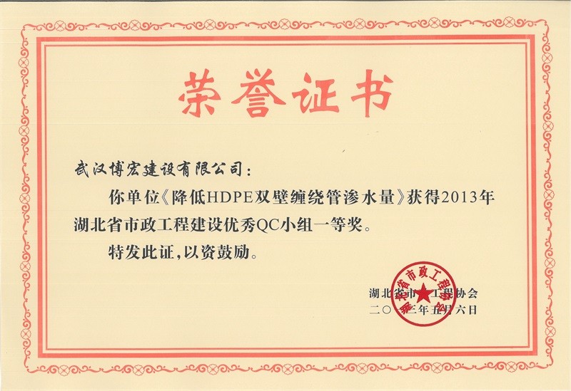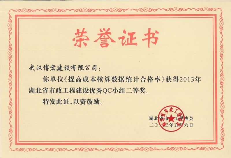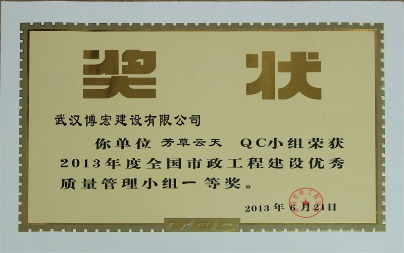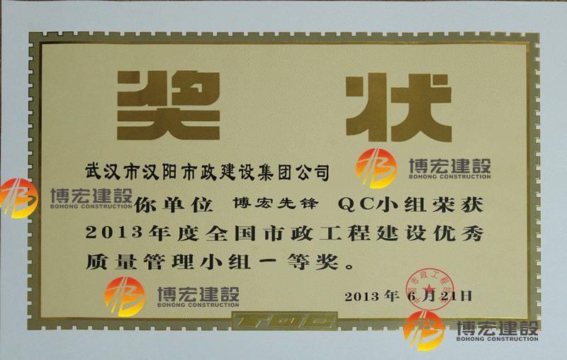 2012年度全國(guó)市政工程建設(shè)先進(jìn)質(zhì)量管理小組