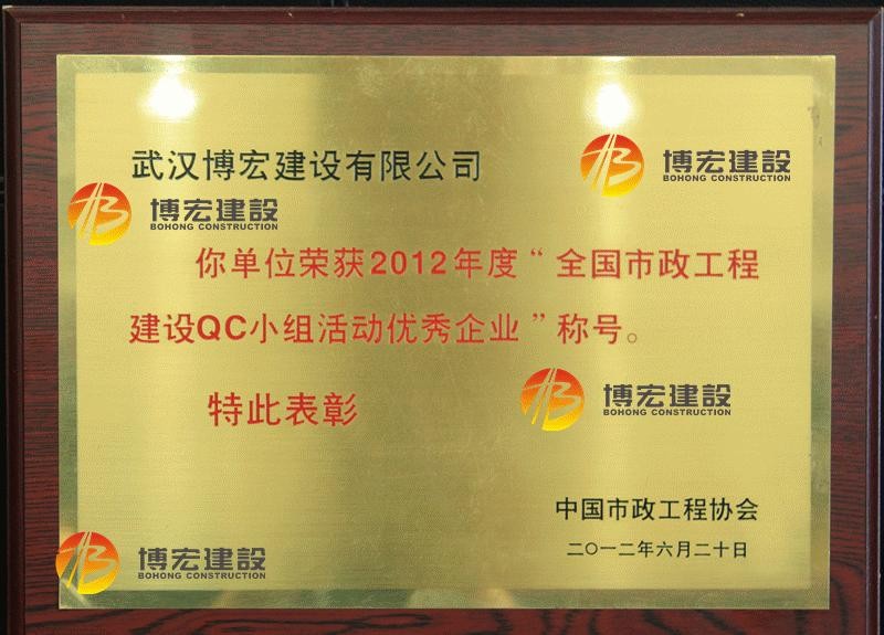 2012年度全國(guó)市政工程建設(shè)QC小組活動(dòng)優(yōu)秀企業(yè)