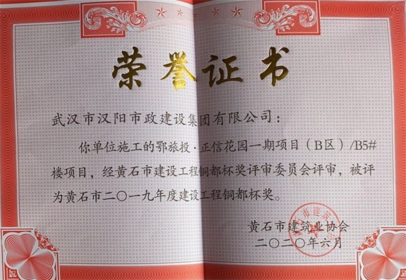 2019年度建設工程銅都杯獎(鄂旅投·正信花園一期項目(B區(qū))B5#樓項目項目