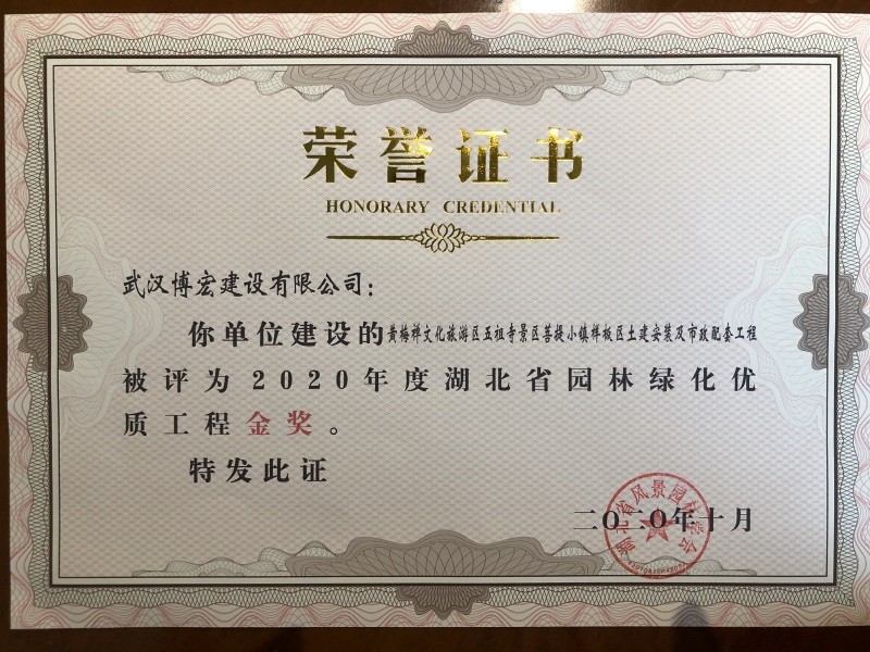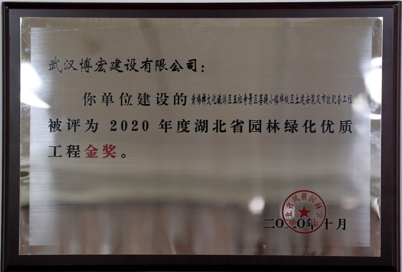 2020湖北省城市園林綠化優(yōu)質工程金獎獎狀