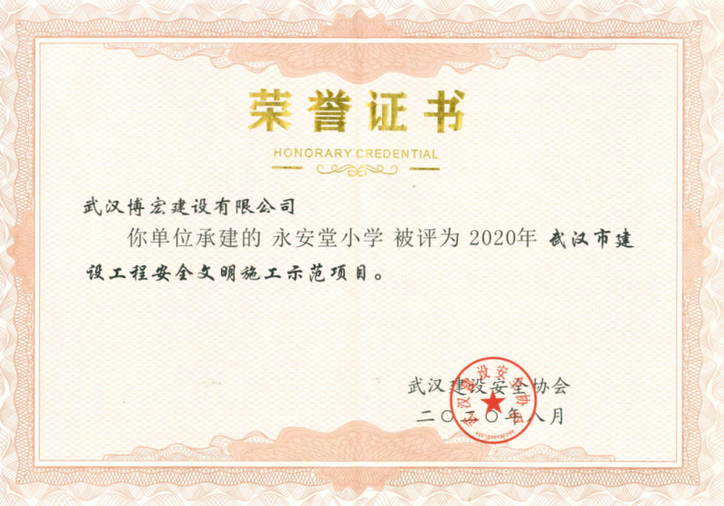 2020年上半年武漢市建設工程安全文明施工示范項目(國博三小)