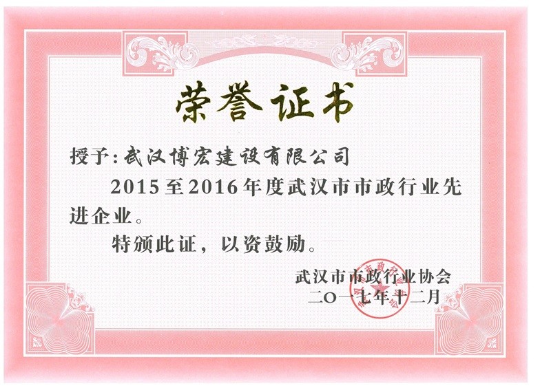 2015-2016市市政行業(yè)先進(jìn)企業(yè)”