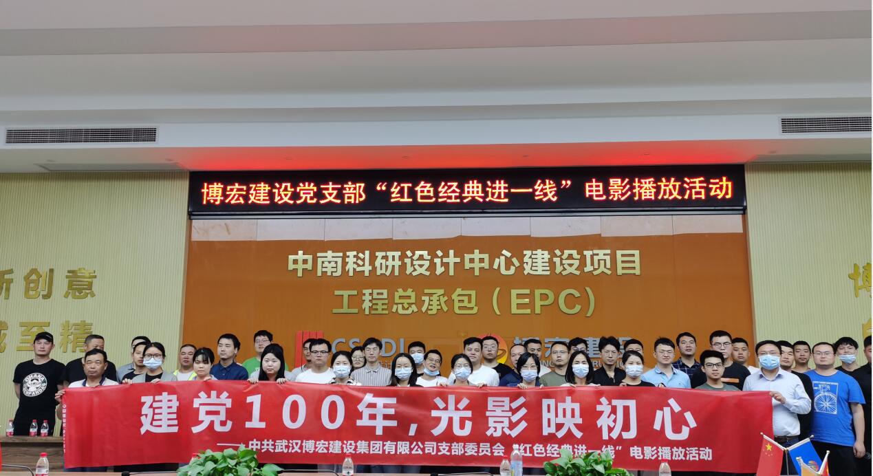 5月7日晚6點,漢陽市政博宏公司黨支部開展“建黨100年,光影映初心”電影播放活動,將紅色電影帶進公司中南科研設計中心項目部,50余位黨員群眾共同觀看“建國三部曲”系列電影之《建軍大業(yè)》,一起追憶紅色故事。