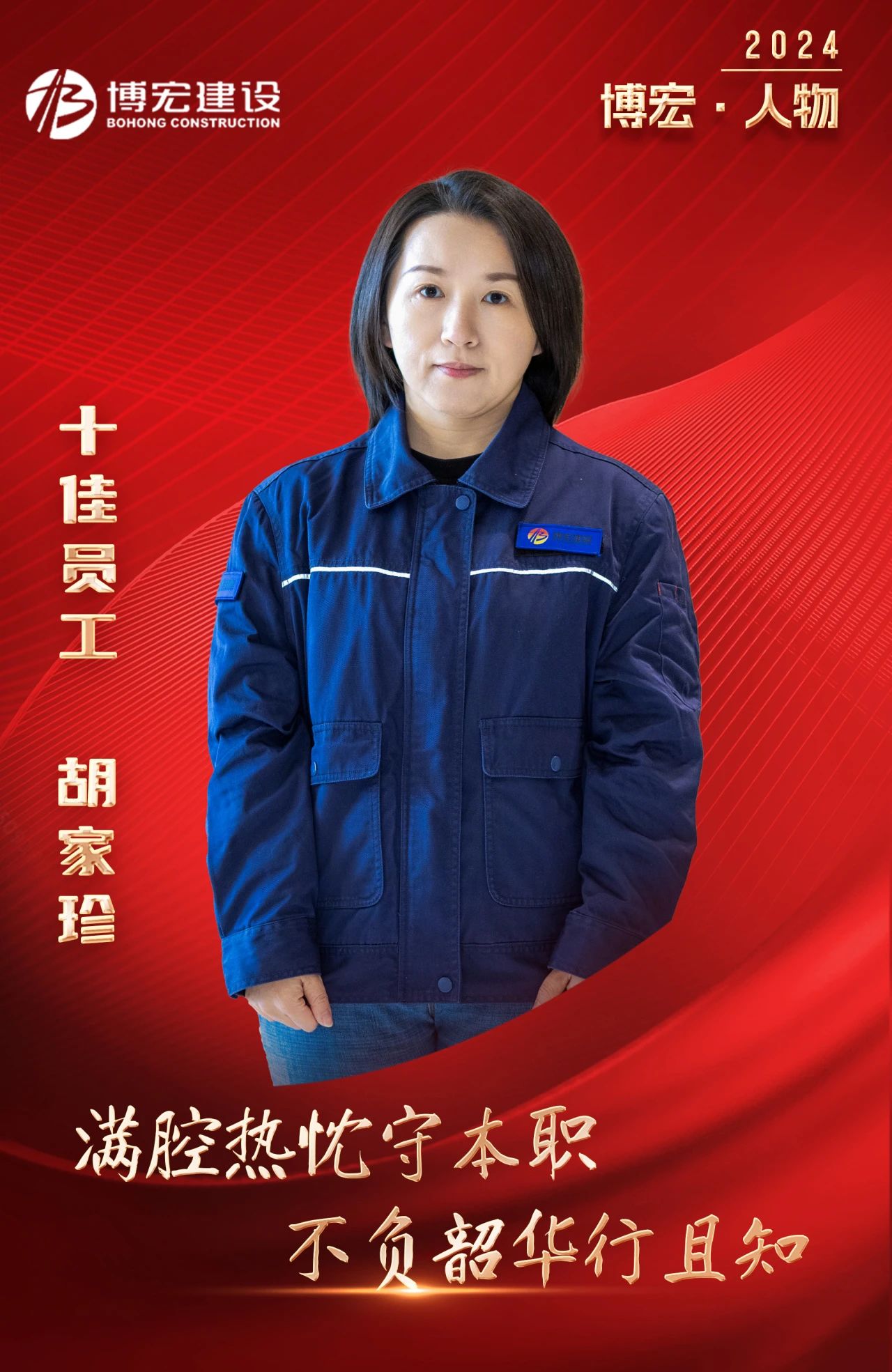 胡家珍,博宏建設(shè)集團(tuán)五項(xiàng)目部資料主管,2019年3月入職博宏建設(shè),先后參與建設(shè)武漢市第五醫(yī)院西院綜合大樓擴(kuò)大片建設(shè)項(xiàng)目,新建居住、商業(yè)項(xiàng)目(月湖船院),新建居住、公共設(shè)施項(xiàng)目(新港臨江匯)(二標(biāo)段)等多個項(xiàng)目。她個子不高,卻敢挑重?fù)?dān),干凈利落的干事風(fēng)格彰顯著她的豁達(dá)與干練,舉手投足間透露出自信灑脫,一絲不茍的工作態(tài)度讓她在一線發(fā)光發(fā)亮,入職博宏建設(shè)5年,連續(xù)獲得公司2020年度、2021年度、2022年度崗位能手,榮獲2023年度十佳員工,一項(xiàng)項(xiàng)榮譽(yù)是夢想照進(jìn)現(xiàn)實(shí)的真實(shí)寫照,是默默堅(jiān)守崗位接續(xù)奮斗的成果。